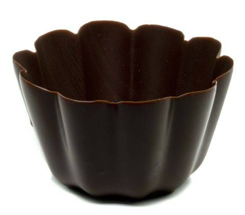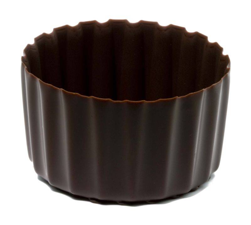 This classic premium dark chocolate cup has sophisticated ridges and circular shape sure to be a delight for any dessert concept! Measuring at 2.52" (64mm) diameter x 1.30-1.46" (33-37mm) height, this cup is great for a scoop of your favorite ice cream.