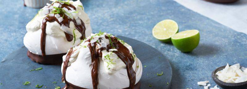Dip half of each meringue nest into the melted chocolate and leave to set