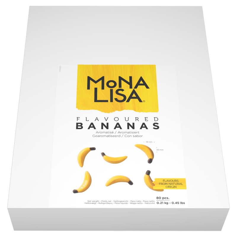 Add a fruity dimension by using Banana flavoured decorations (L: 40, W: 18mm). Perfect for fruit themed ice creams, milkshakes and cakes.