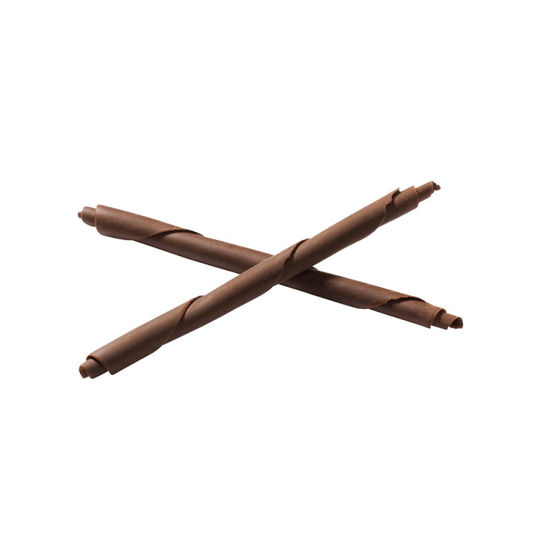 Finely rolled elegant Dark Chocolate Large Pencils (D: 7, L: 100mm). These sticks add texture and flavour to plated desserts, cakes and even ice-cream.