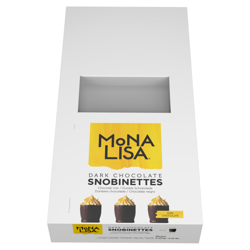 Elegant Chocolate Snobinettes (D: 23, H: 26mm), for the perfect bite size dessert. The cups offer endless possibilities: fill them with ganache, crèmes, mousses, caramels or ice creams and finish them off with your favourite decorations or saunites. Everything is possible, so give your creativity free reign.