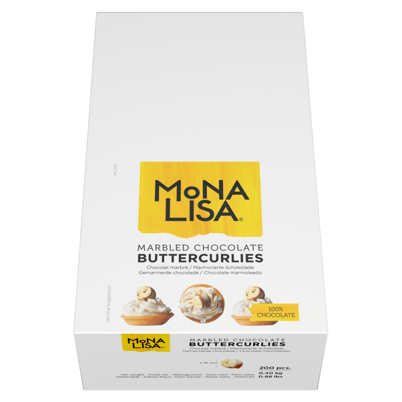 Marbled indulgent Butter Curly™ (D: 16, L: 21mm) will add a premium touch to your desserts in one simple step. No two chocolate curls are the same so Butter Curly™ is the ideal decoration if you're into a hand-made and unique look and feel.