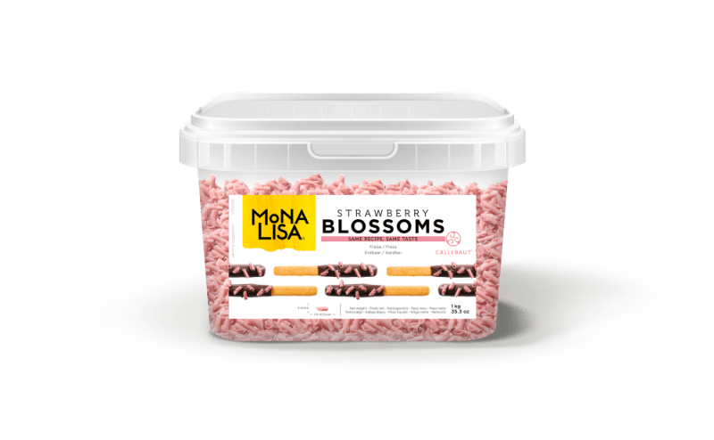 Strawberry Blossoms are great for making your sweet delights stand out; Made of strawberry-coloured and -flavoured white chocolate, they pair creamy indulgence with a bold strawberry flavour. With their delicately thin shape, Blossoms melt easily, creating a very pleasant mouthfeel. Just sprinkle them generously on top of shakes, ice cream, donuts, cupcakes and pastries to enrich them with a beautiful and colorful chocolate touch. Approximate size L7.5-10.5 W4-6 mm