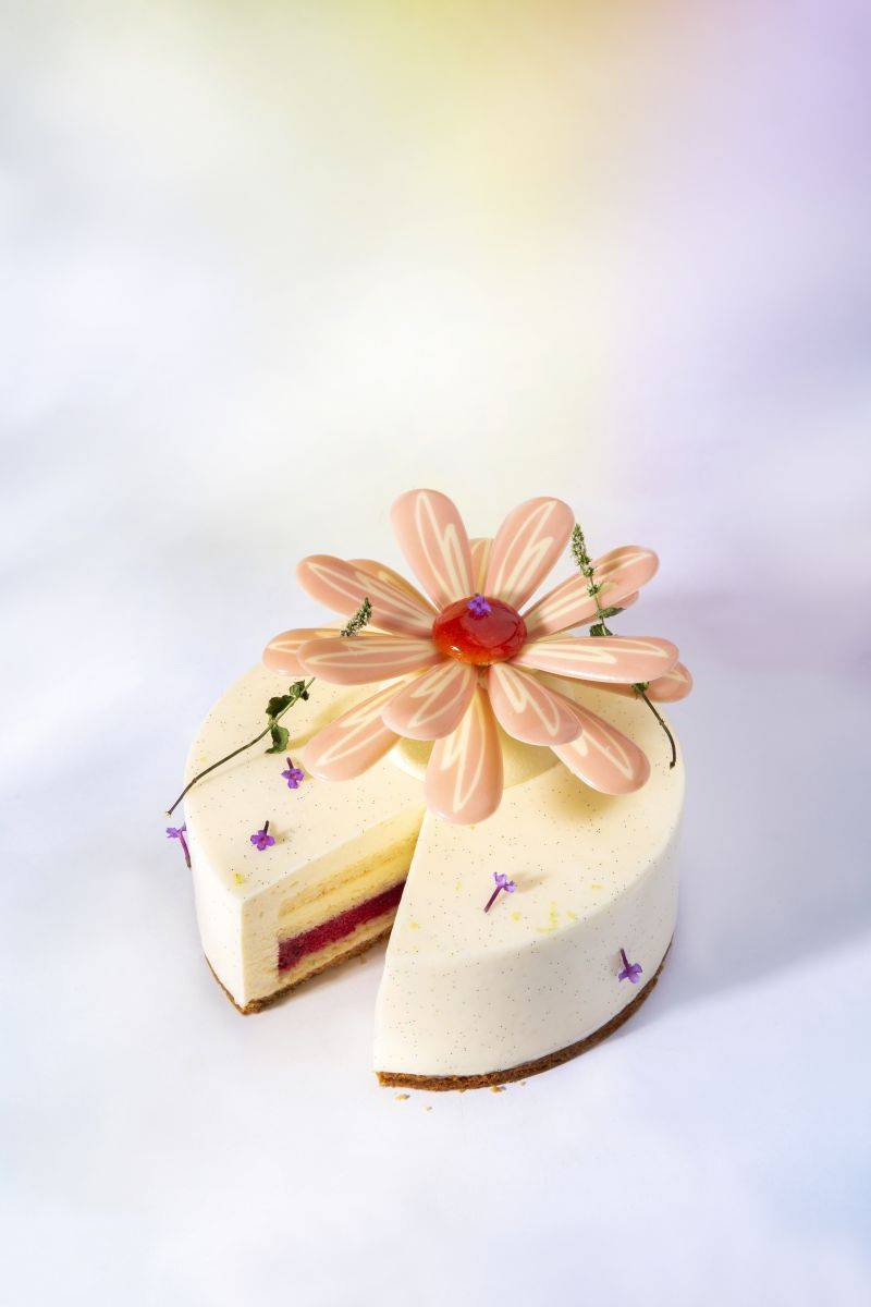 FLOR ENTREMENT by FRANK HAASNOOT A floral entremet with vanilla mousse, cherry blosso whip ganache and lemon crumble ... Frank Haasnoot created the perfect saint-valentines dessert, using floral leaves to finish off this loving sharing plate.