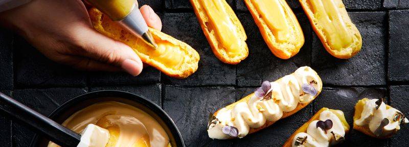 Mix. Add the hot milk. Cook til 82°C. Cool down the custard cream.