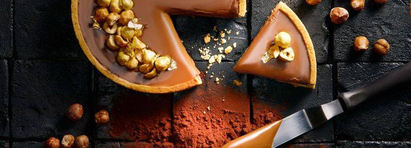 Roll out the dough to a 4 mm thickness and fit it in a tart pan. Bake at 165°C. Let the crust cool down, then fill with Doppia Nocciola filling.