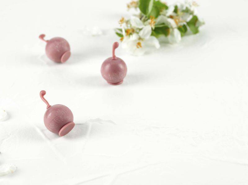 Recipes for approx. 9 hemisphere praline shapes (2.5 cm diameter at 5g). A total of 360 hemispheres makes 180 cherry bonbons.