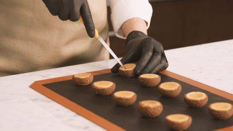 Flavors of vanilla, caramel, and Gold chocolate come together in these individual cakes to create a classic flavor experience. In order to achieve perfect results, pay close attention to ingredient temperatures as you prepare each component.