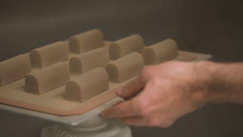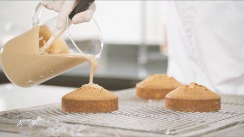 This beautiful cake has a very surprising look and texture thanks to an easy-to-accomplish chocolate snow garnish on top. This cake also contains no eggs, which contributes to its long shelf life.