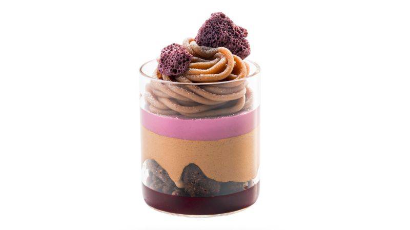 Cubrir la mousse con crema de cassis gelificada y dejar reposar en la nevera.
