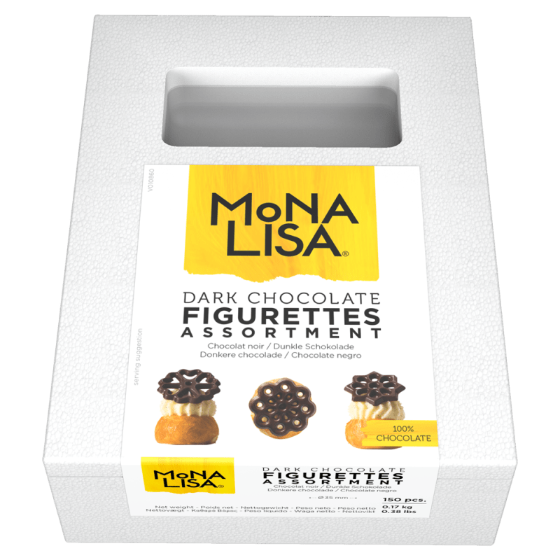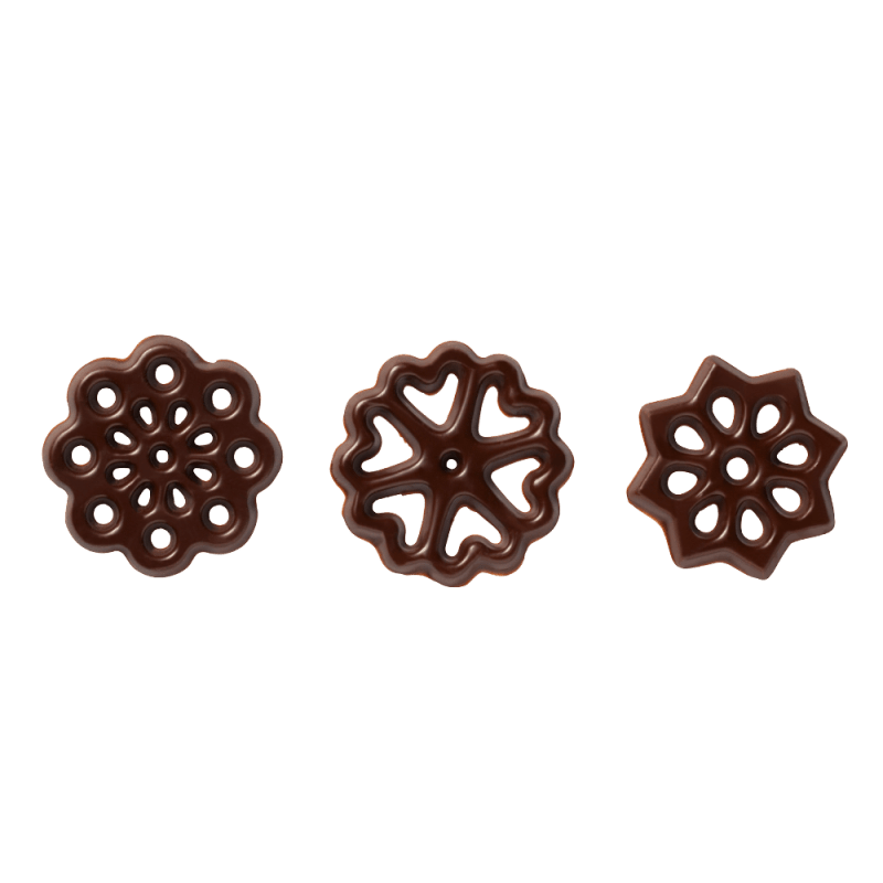 Une collection de trois Figurettes en chocolat noir (Ø : 35 mm) qui ajouteront une touche d’élégance à vos créations. Idéal pour décorer vos choux, éclairs et crèmes glacées. Ce lot contient 150 pièces, et ce produit existe également en lot de 475 pièces.