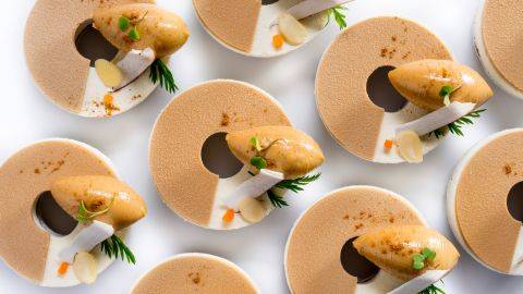 Ingrassare gli stampi per madeleine e, utilizzando una manica da pasticcere, riempirli con 30 g di impasto marmorizzato.