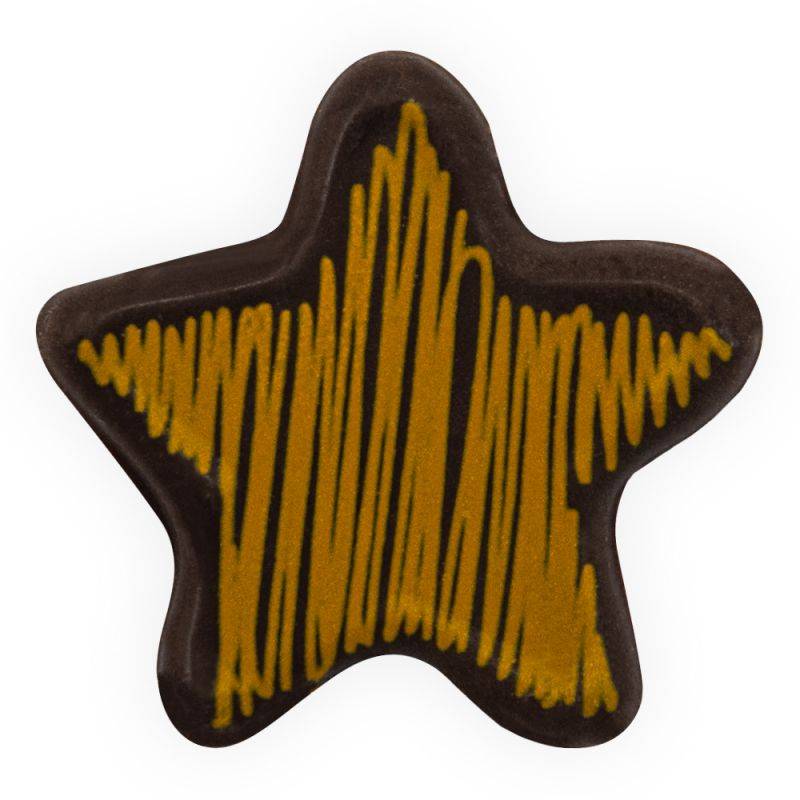 Chocolate decoration, chocolate shape Wax Seal Star Shape for pastry and desserts. Made of dark Belgian chocolate with a gold star print based on sugar. Printing colors are From Natural Origin and Titanium Dioxide Free. Dimensions are 32 x 32mm. Each pack contains 70 chocolate seals. Tip for Christmas.