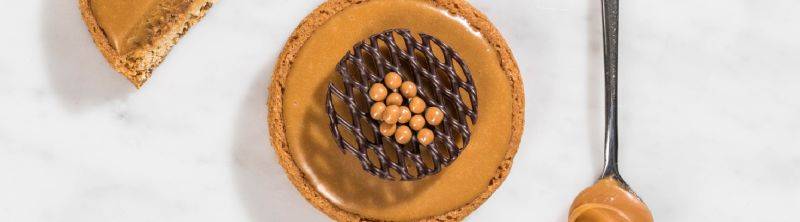 Spuit de gezouten caramel cremeux in de tartelette.