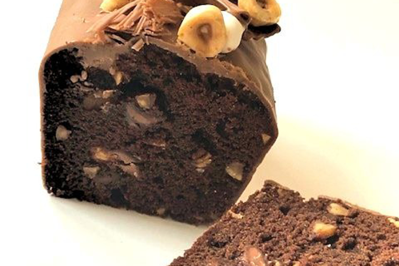 Masło utrzeć na pianę. Mleko zagotować, zalać czekoladę ciemną 811, wymieszać, połączyć z ubitym masłem. Jaja i cukry podgrzać, następnie ubić na pianę. Do ubitych jaj dodać czekoladę wymieszaną z masłem, dodać pralinę, wymieszać. Dodać przesiane suche składniki, wymieszać. Na koniec dodać Pokruszone orzechy i pokrojoną w kostkę czekoladę Gianduja. Gotowe ciasto przełożyć do form. Odpiekać w piecu nagrzanym do 180⁰C przez 30-35 minut.