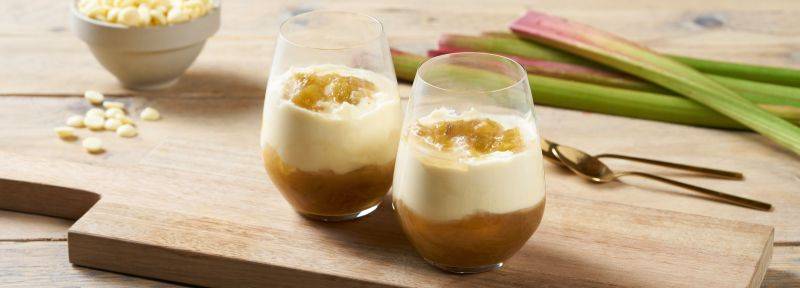 Składniki: Mus z Białej Czekolady Z Rabarbarem