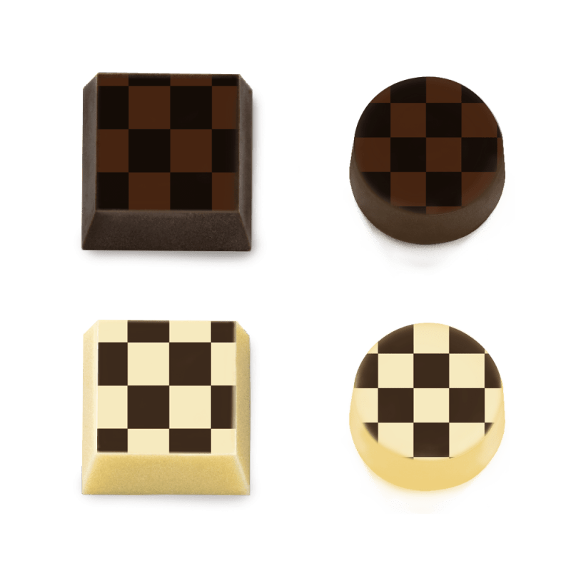 Chessboard transfer sheet with a brown Cocoart checkered print based on sugar for chocolate and other confectionery. Printing colors are From Natural Origin, and Titanium Dioxide-Free and E-Free. Dimensions are 300 x 400mm. Each pack contains 30 transfer sheets. Also available on rolls for industrial use.