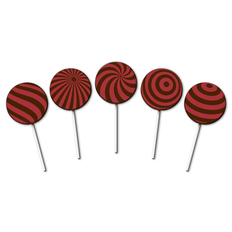 Circus Lollies transfer sheet for making chocolate lollipops with various swirly designs in red print based on sugar for chocolate and other confectionery. Printing colors are From Natural Origin and Titanium Dioxide Free. The transfer sheets are pre-cut for magnetic lollipop mould F000156. Dimensions are 163 x 264mm. Each pack contains 30 transfer sheets.