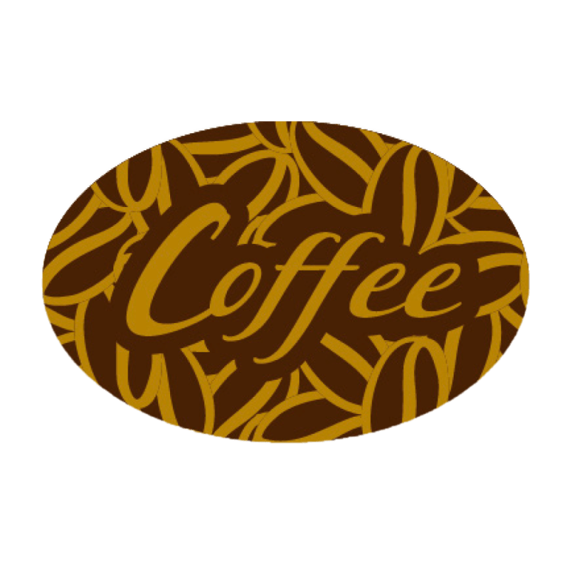 2D Chocolate decoration oval plaque made of dark Belgian chocolate with a gold coffee beans and "Coffee" print based on sugar. Print colors are From Natural Origin and TiO2-free. Dimensions are 27 x 18mm. Each pack contains 400 pieces.