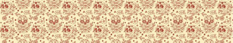 Festive Skulls transfer sheet with a red sugar skulls (Día de los Muertos/ Day of the Dead) print based on sugar for chocolate and other confectionery. Product From Natural Origin, free from Titanium Dioxide and suitable for vegans. Dimensions are 300 x 400mm. Each pack contains 30 transfer sheets. Tip for Halloween.