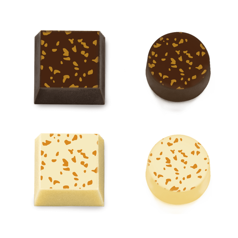 Flakes transfer sheet with a gold flakes print based on sugar for chocolate and other confectionery. Printing colors are From Natural Origin and Titanium Dioxide Free. Dimensions are 300 x 400mm. Each pack contains 30 transfer sheets. Also available on rolls for industrial use.