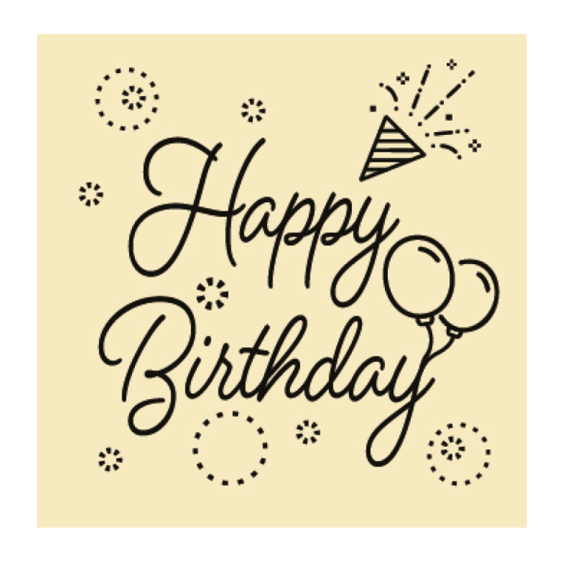 2D Chocolate decoration square plaque made of white Belgian chocolate with a black Cocoart "Happy Birthday" print based on sugar. Print colors are From Natural Origin and TiO2-free. Dimensions are 25 x 25mm. Each pack contains 280 pieces.