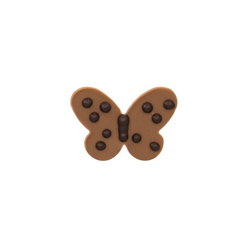 2D Chocolate decoration, chocolate shape butterfly made of Belgian milk chocolate with dots of dark Belgian chocolate. Dimensions are 28 x 40mm. Each pack contains 196 pieces. Tip for Easter.