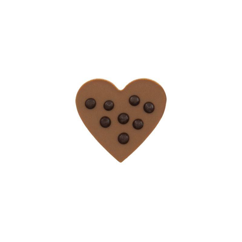 2D Chocolate decoration, chocolate shape heart made of Belgian milk chocolate with dots of dark Belgian chocolate. Dimensions are 35 x 37.5mm. Each pack contains 224 hearts. Tip for Valentine's Day.