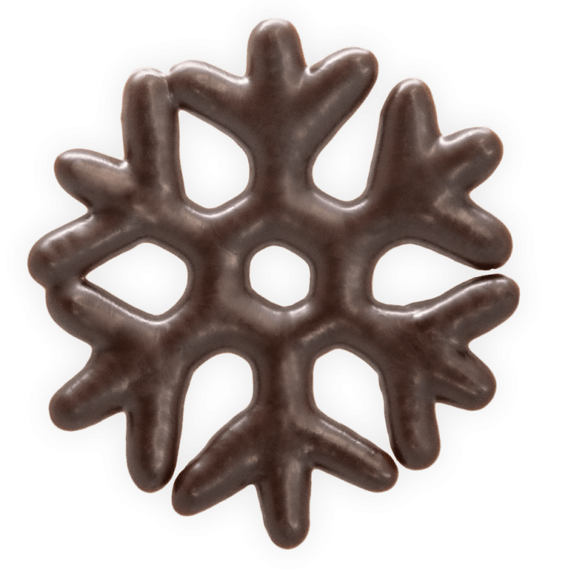 Chocolate decoration, chocolate shape assorted artisanal snow crystals made of dark Belgian chocolate. Dimensions are 55 x 56mm. Each pack contains 80 snowflakes. Tip for Christmas.
