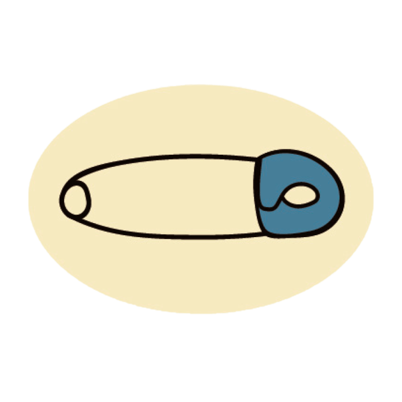 2D Chocolate decoration oval plaque made of white Belgian chocolate with a blue and black safety pin print based on sugar. Print colors are From Natural Origin and TiO2-free. Dimensions are 27 x 18mm. Each pack contains 400 pieces.
