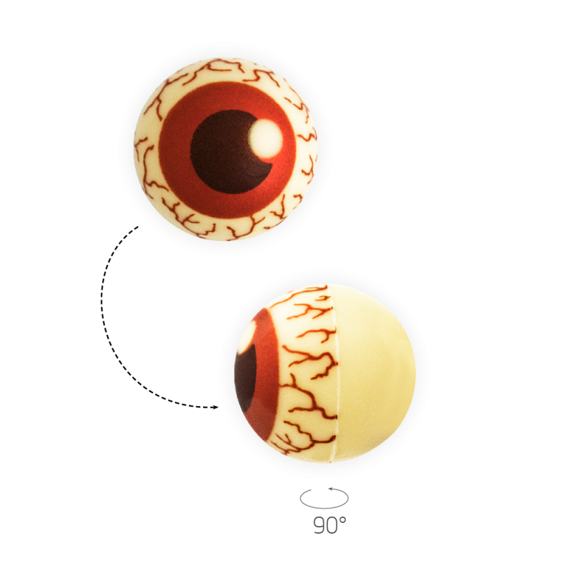 3D Chocolate decoration ball, made of white Belgian chocolate with a black and red eyeball print based on sugar. Product From Natural Origin and free from Titanium Dioxide. Dimensions are 25 x 25mm. Each pack contains 63 balls. Tip for Halloween.