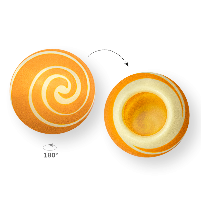 Chocolate shell for desserts with an opening to easily fill it with mousse, ice cream, ganache, cream or praline filling. The chocolate decoration Dessert Swirl Shell Gold White is made of white Belgian chocolate with a gold swirl print based on sugar. Print colors are From Natural Origin and TiO2-free. Dimensions are 65 x 65mm. Each pack contains 20 spheres