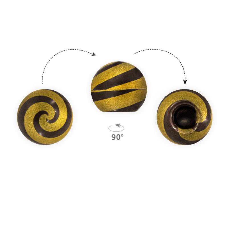 Chocolate decoration Truffle Shell Swirly Gold 2 for creating truffles, made of white Belgian chocolate with a gold swirl print based on sugar. Print colors are From Natural Origin and TiO2-free. Our truffle shells have an opening to easily fill them with mousse, ice cream, ganace, cream of praline filling. Dimensions are 25 x 25mm. Each pack contains 63 pieces. Tip for Christmas.