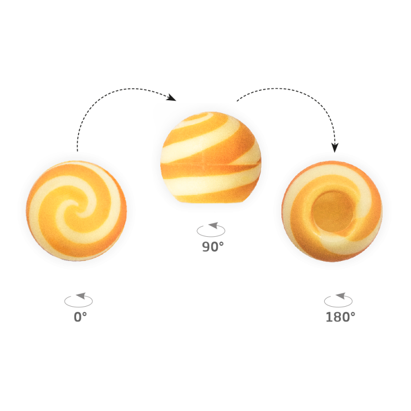 Chocolate decoration Truffle Shell Swirly Orange 2 for creating truffles, made of white Belgian chocolate with an orange swirl print based on sugar. Print colors are From Natural Origin and TiO2-free. Our truffle shells have an opening to easily fill them with mousse, ice cream, ganace, cream of praline filling. Dimensions are 25 x 25mm. Each pack contains 63 pieces. Tip for Christmas. Tip for Easter.