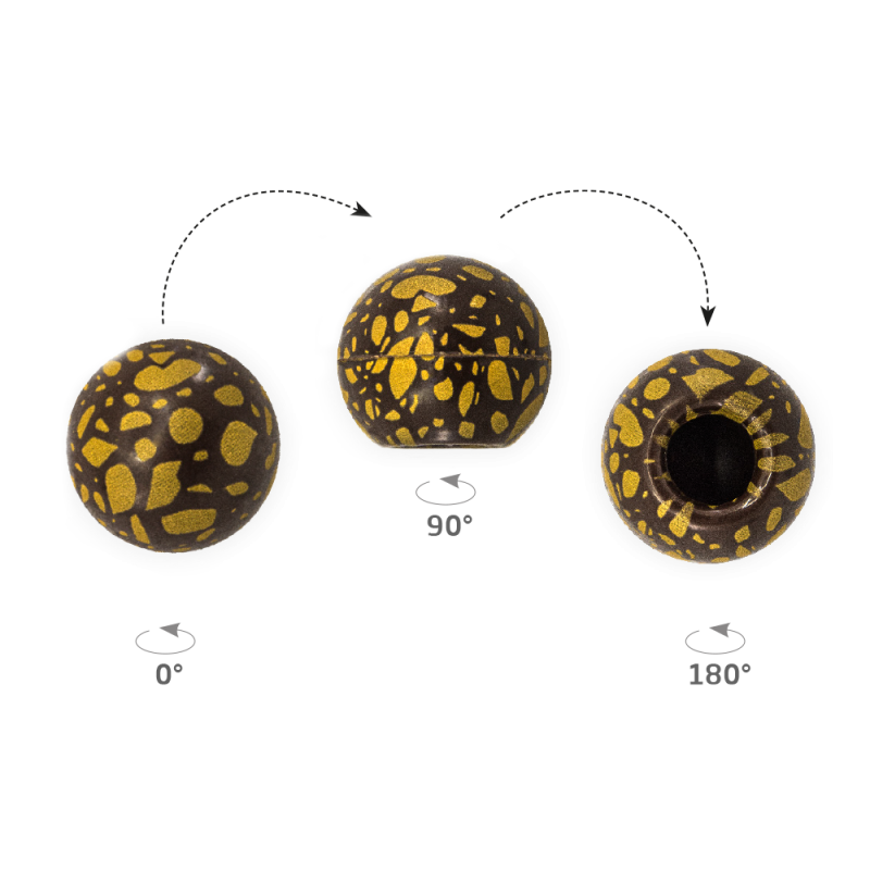 Chocolate decoration Truffle Shell Terrazzo for creating truffles, made of dark Belgian chocolate with a gold terrazzo print based on sugar. Print colors are From Natural Origin and TiO2-free. Our truffle shells have an opening to easily fill them with mousse, ice cream, ganace, cream of praline filling. Dimensions are 25 x 25mm. Each pack contains 63 pieces.